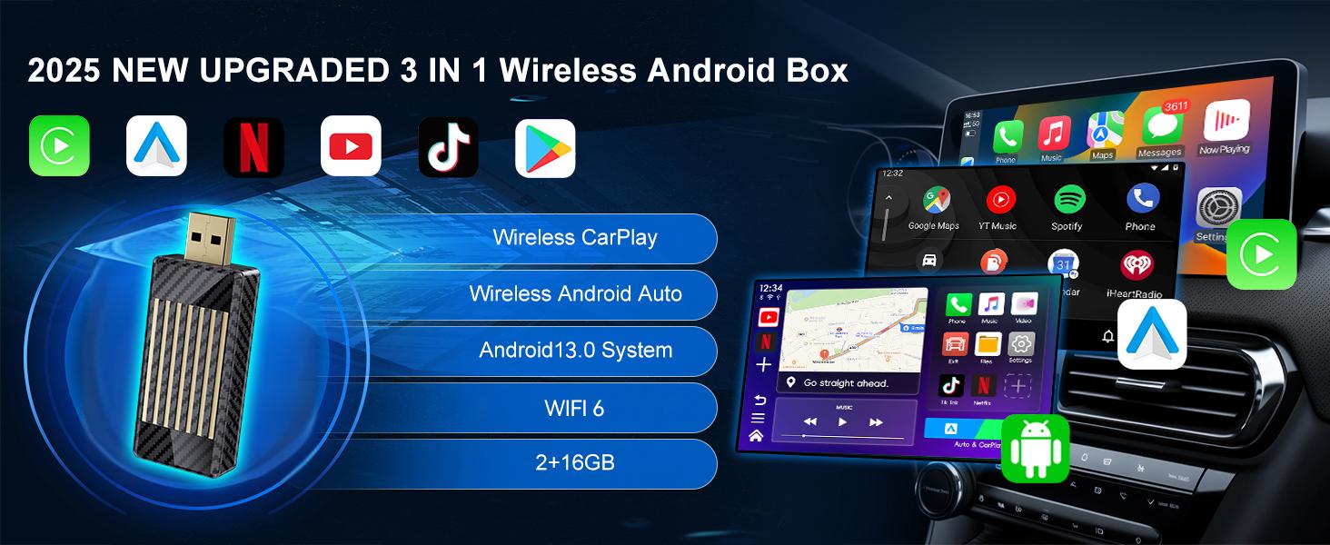 Mini Al Box -3 in 1 Wireless CarPlay and Android Auto Adapter