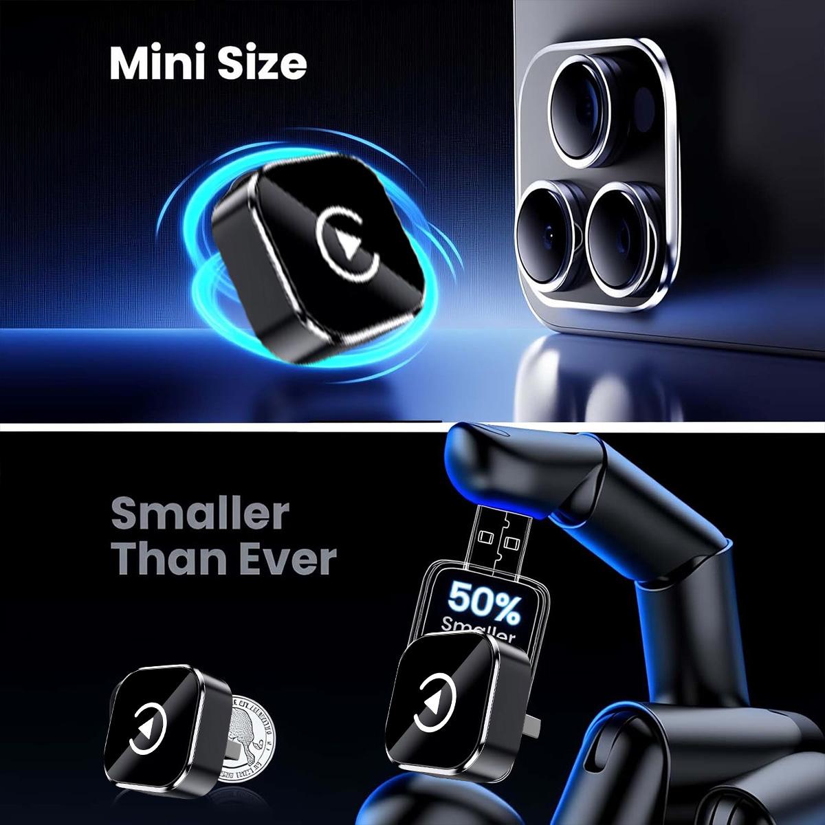 2-in-1 wireless carplay adapter features a small and compact design that makes the wireless carplay dongle perfectly integrated into the interior of the car,built-in 2.4/5GHz WIFI, 5.0 Bluetooth with upgraded smart chip. Startup is lightning fast with no delays. The connection is stable and reliable, with few delays and connectivity issues during connection. The 2-in-1 wireless carplay & android auto adapter maintains a strong signal even in situations that may interfere with the signal, such as underground parking lots or crowded metropolitan environments.